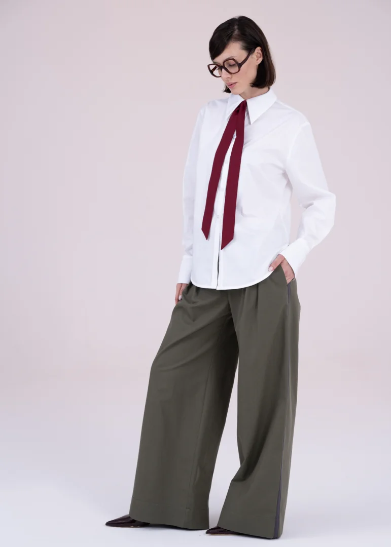 - Gently falling sleeves with cuffs at the bottom