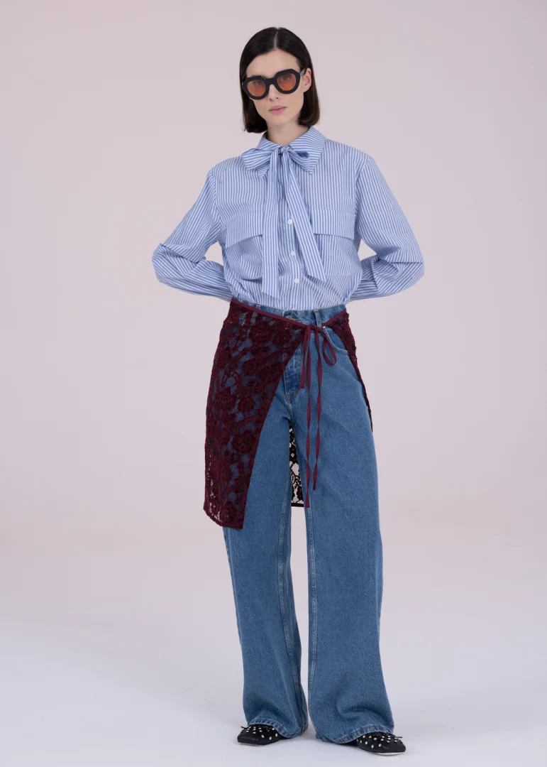 - Ties at the waist with a drawstring.