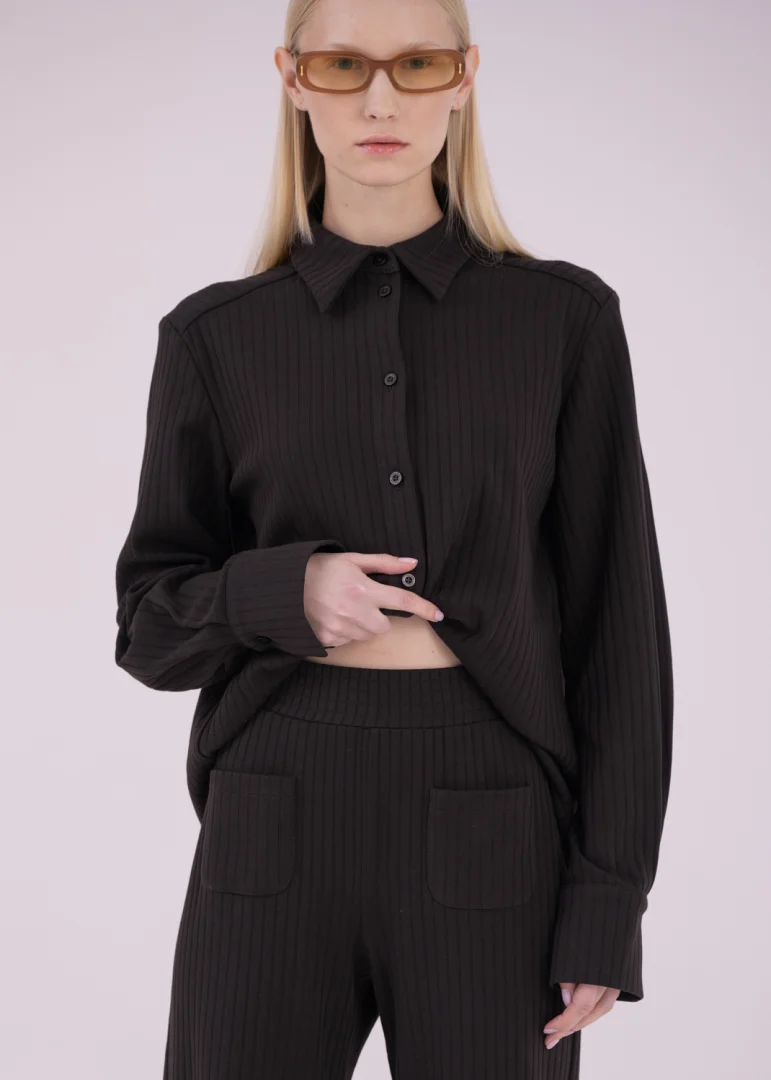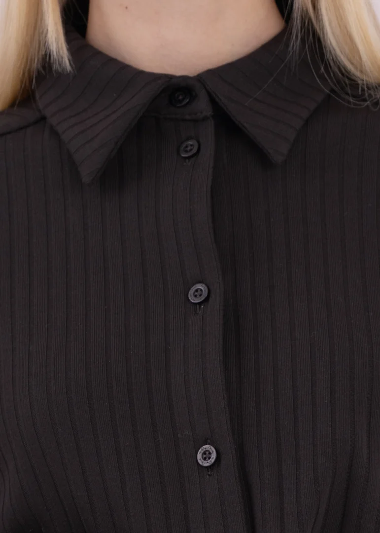 - The cuffs and stand-up collar fasten with matching, branded buttons.