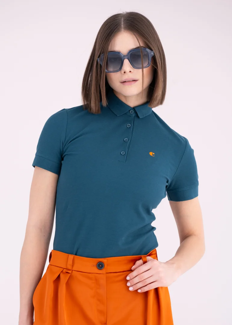 - Logo button and placket fastening