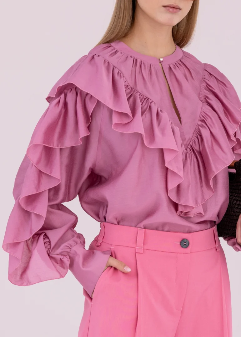 - Front and sleeves decorated with ruffles